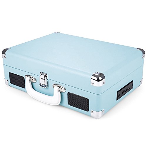 Lauson CL504 Vintage 3-Speed USB Suitcase Turntable with Speakers, Turquoise