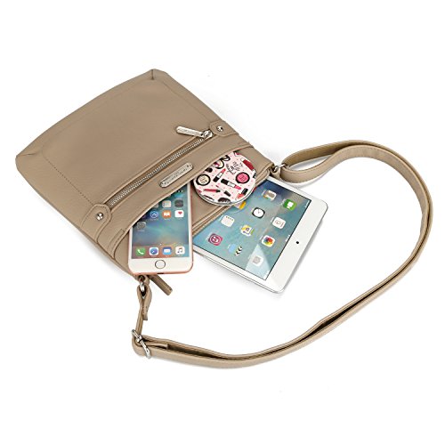 FEATURE OF CROSSBODY PURSE: 1:This cross body shoulder strap is adjustable•2:and there are 1 zipper compartments, 2 side slip pocket ,So it has ENOUGH SPACE for you to get cards, phone, keys, make up and etc around.