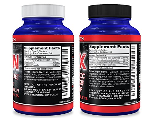 -. Feature : 5000mg of Creatine Monohydrate, Creatine Phosphate, Creatine Pyruvate / 3150mg of Compounded Nitric Oxide including A-AKG (arginine alpha-ketoglutarate), OKG (ornithine alpha-ketoglutarate), GKG (glutamine alpha-ketoglutarate), and A-KIC (arginine ketoisocaproate) / PRE WORKOUT: Rapid pre-load energy production and enhanced cellular function. / POST WORKOUT: Increase blood flow and nutrient delivery directly to the muscles. / OUR "NO BULL" PROMISE - See results or see your purchase refunded. No hassle. No questions.