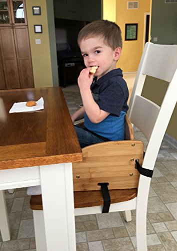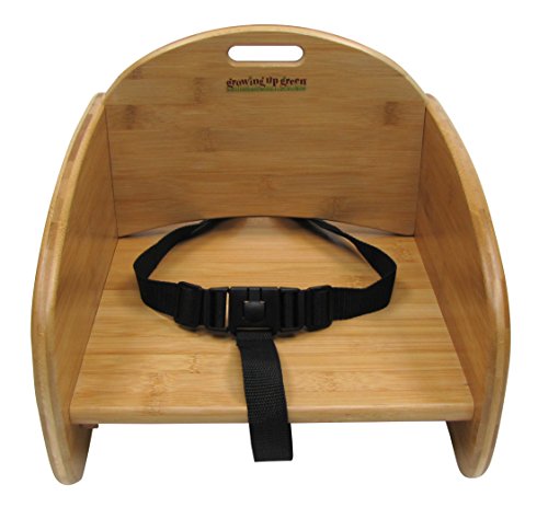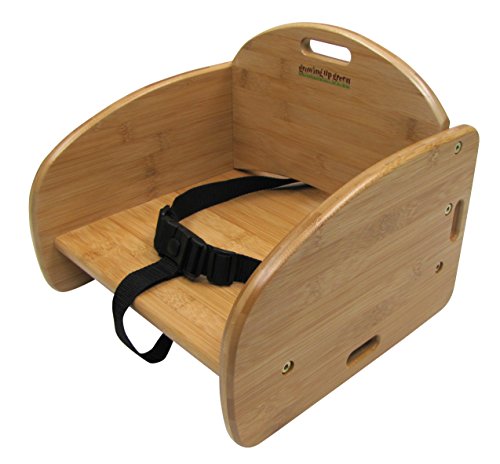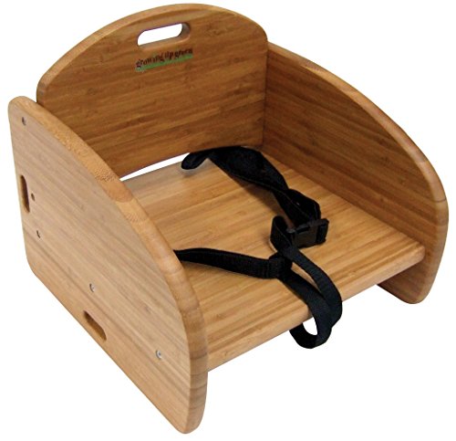 The Growing Up Green Bamboo Booster Seat represents Ginsey's commitment to a safer and more environmentally conscious world. Made out of pesticide free sustainable bamboo, this beautifully crafted booster features a contoured shape and carrying handle for easy transport. The adjustable safety strap securely fastens around any standard, flat bottom dining chair while doubling as a seatbelt around the waist of your little one. Slide to the desired tightness to ensure a snug fit while dining. 100% bamboo provides a naturally water resistant surface for fast & easy clean-up! Foster independence while your child grows with this eco-friendly & contemporary design. Maximum weight is 65 lbsFeature