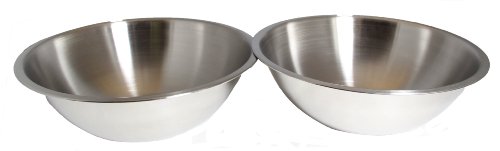 SET OF 2 - 7 3/4 Inch Wide Stainless Steel Flat Rim Flat Base Mixing Bowl