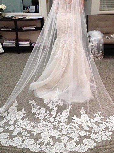 Unicra Lace Edge Cathedral Length Wedding Bridal Veil+Comb (Ivory)