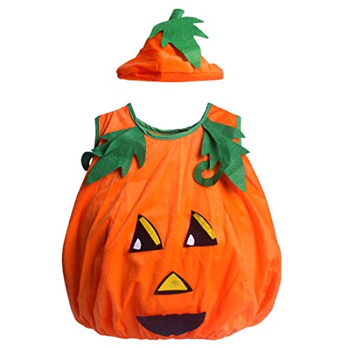 -. Feature : Fabric: flannel. / Suitable for 80-135cm. Unisex costume. / Hand Wash. / Includes: Orange Pumpkin Face Tunic and Hat. / Orange pumpkin costume for children.