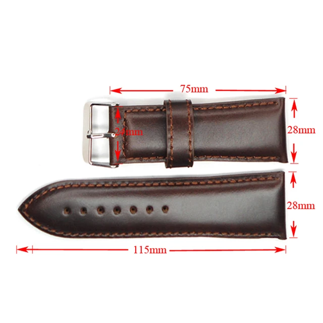 | [해외]가죽 시계 스트랩 28 미리메터 시계 밴드 이탈리아 정품 오일 가죽 다크 브라운 빈티지 스타일 손목 남성 시계 |