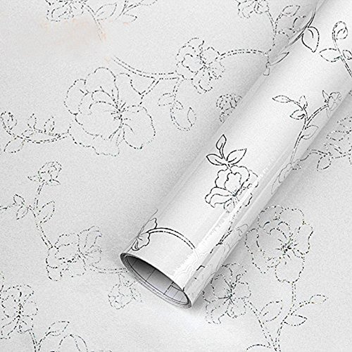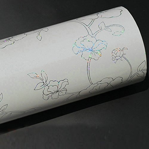 YIZUN Self Adhesive PVC Laser Peony Shelf Liner Kitchen Contact,24x98 Inch,White