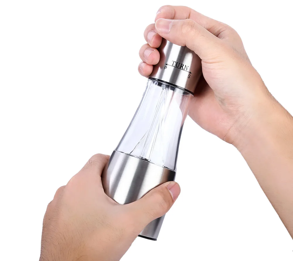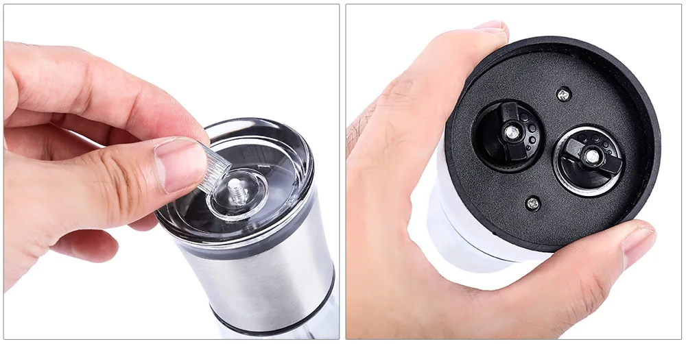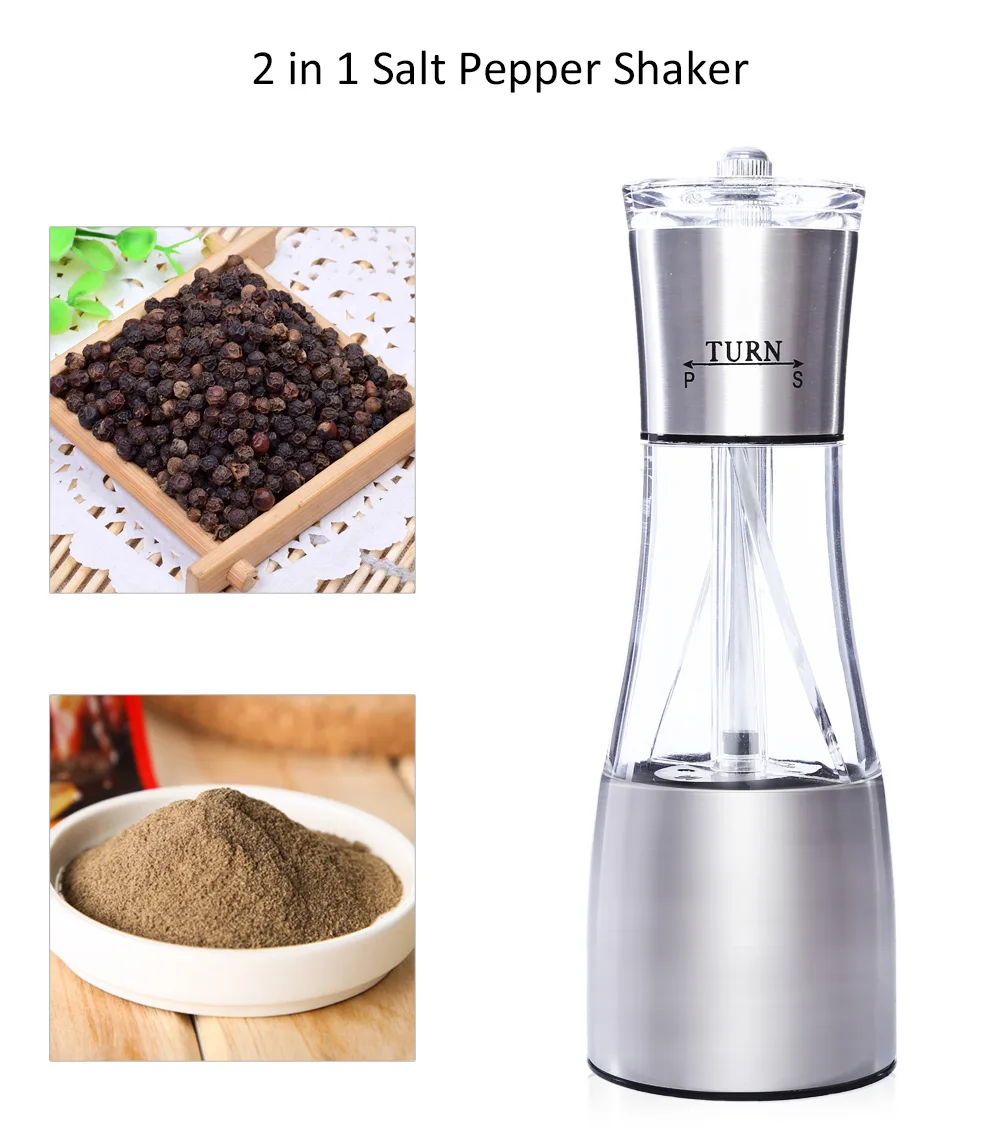 New Household Mini Salt Pepper Shaker Kitchen Manual Stainless Steel 2 in 1 Hand Salt Pepper Shaker with Adjustable Coarseness