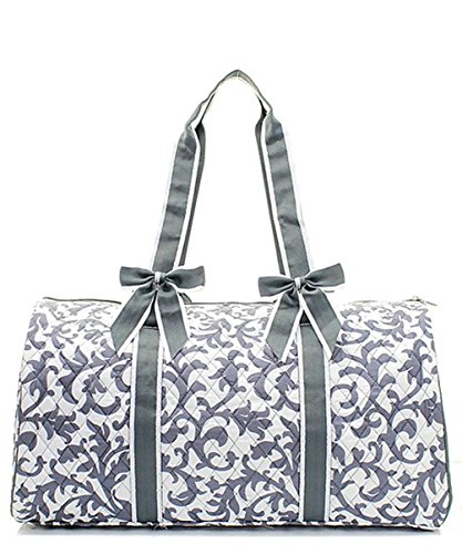 -. Brand : J&C Family Owned -. Color : Multi -. Department : unisex-adult (lage only) -. EAN : 0792481205165 -. Feature : Family Owned/Operated, US America Seller, Quick Shipping / Quilted Duffle Bag / Can be monogrammed after purchase / Great Bag for any purpose / Size: 20 "L X 11 "D X 11 "H -. NumberOfItems : 1 -. ProductGroup : Apparel -. ProductTypeName : LAGE -. Size : One Size -. Title : J&C Damask Monogram Ready Quilted 20" Duffle Bag -. UPC : 792481205165