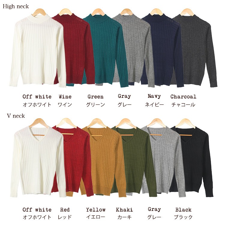 Vネック:オフホワイト、レッド、イエロー、カーキ、グレー、ブラック