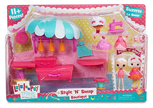 Hold the cuteness of Lalaloopsy in the palm of your hand. Lalaloopsy Minis dolls each come with an adorable pet and fun accessory that fit their personalities. Lalaloopsy Minis Suzette La Sweet is taking a break from lounging to stroll through the new boutique. It’s filled with lots of fashions perfect for relaxing and reclining, she thinks. Product Features: • Customize the styles of the Lalaloopsy Minis dolls at the Style ‘N’ Swap Boutique! • Display and play with the wigs and outfits in this adorable Lalaloopsy boutique playset! • Wigs, fashions and shoes are all removable • Includes a Lalaloopsy Minis Style ‘N’ Swap doll, Suzette La Sweet, and fashion accessories! • Ages: 4-104 yearsFeature