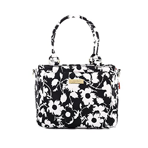 The Ju-Ju-Be Be Classy Diaper Bag is like you - a class act. You might spend a majority of your days covered in baby food, or picking up the playroom for the 100th time, but have no doubt: you are still the same classy woman you have always been and will always be. Which is why we want to thank you for the inspiration behind this bag design. Thanks to the feedback from our talented fan base we were able to create the Be Classy: a bag that is a testament to the spirit of the Pink Ladies that make Ju-Ju-Be great, and the standard to which we always strive. A bag that is not only one of our most functional, tailored designs, but also possibly the most timeless. With its sleek design and adjustable messenger strap or structured handbag style carrying options, the Be Classy is the perfect culmination of your favorite Ju-Ju-Be features. A bag so functional you will bring it on your first outing with your newborn, and one so elegant you will carry it well after the diapering days are done. The light colored lining is protected with an Agion natural antimicrobial treatment that inhibits and reduces the growth of odor-causing bacteria, mold and mildew. The outer fabric is treated with Teflon fabric protector, making it easy to repel stains. The front "mommy" pocket holds keys with a stretch key fob and sunglasses (cleans lenses too.) with plenty of room for more. The main zipper pocket is large enough for diapers, wipes, extra clothes and other items. Keep organized inside with (3) gusseted pockets and (1) zippered pocket. The back pocket is designed with crumb drains to keep this area clean and includes a super cushy memory foam changing pad. The (2) bottle pockets are located on either side of the bag and insulated with Thinsulate to keep items warm or cold. The structured bag is accented by metal hardware, including luggage feet to keep the bottom of your bag clean when you set it down. This bag is machine washable and measures 13.38-inches by 11-inches by 6.5-inches.Feature