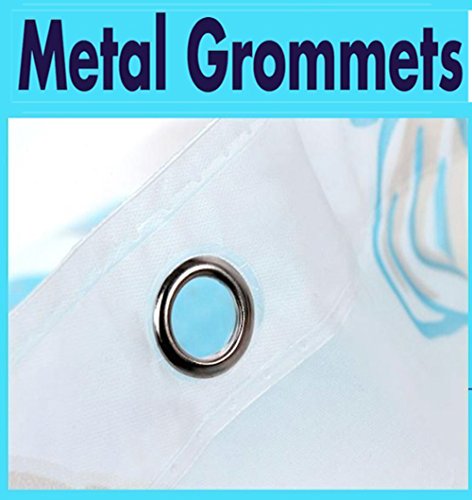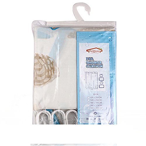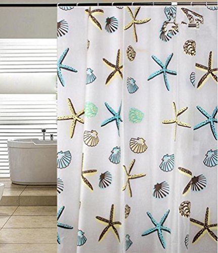 PEVA Mildew Free Water Repellant Shower Curtain Extra Wide 84 x 72 With 12 Hooks (Starfish and Sea Shells)