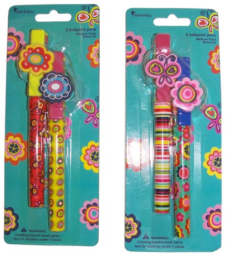 Inkology Blissful Garden 2-Pack Ball Point Pen with Clip Cap, Medium Point, Black Ink, Colors May Vary (692-3)