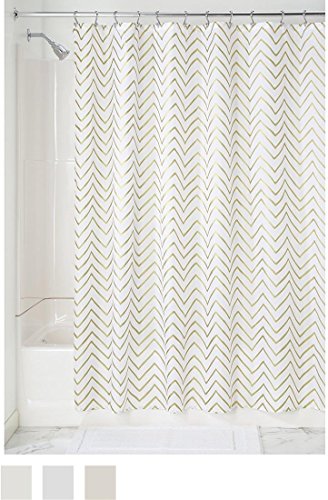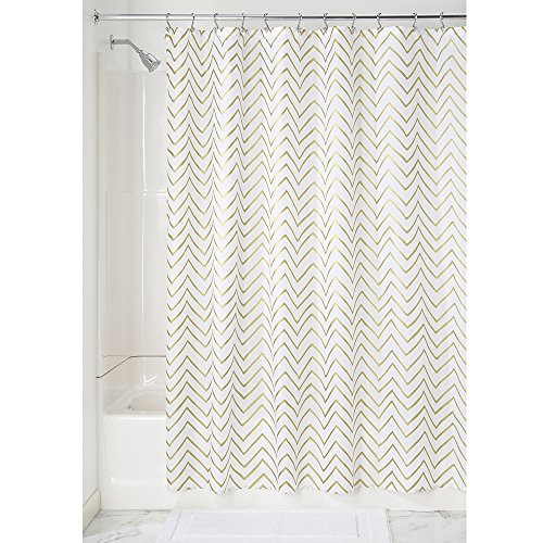 InterDesign Sketched Chevron Soft Fabric Long Shower Curtain, 72 x 84", Gold