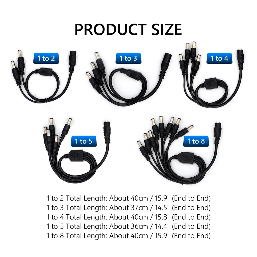 Connectors: Female to male, 2/3/4/5/8 way, 5.5x2.1mm