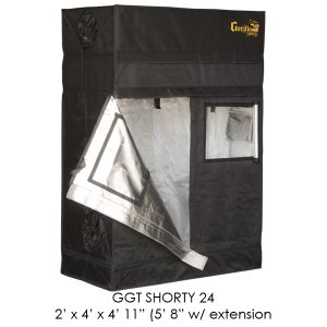 -. Feature : Gorilla Grow Tent Shorty / 2' x 4' x 4'11'' (5'8'' with extension) / Comes with 9'' extension / Same durability as standard Gorilla Tent / Great for rooms with small ceilings