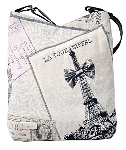 French Vintage Satchel Bag "Bons Baisers De Paris" - Eiffel Tower Print - Beige Pinkish - 9.4" X 9" X 2.4"