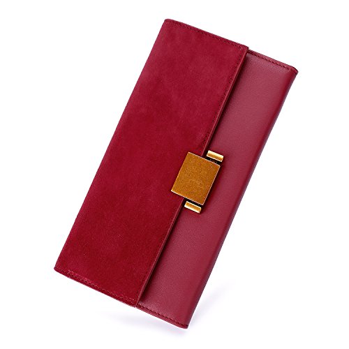 - MATERIAL: high quality smooth NAPA leather and lambskin suede leather, unique brass gold metal lock snap closure design.