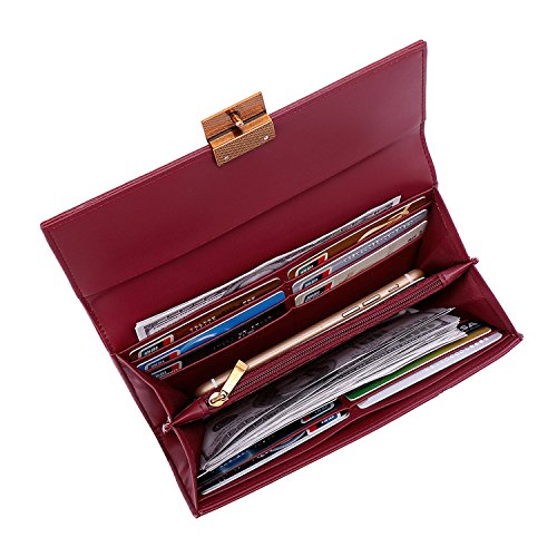 - LARGE CAPACITY :2 LARGE CASH HOLDERS,well suited to 3"*6" checkbook and iphone 8/8 plus, 2 bill sections,12 CARD SLOTS,licence,credit cards and health insurance cards can be slide in and out easily,great for a owner who needs to keep lots of cards on hand. 1 ZIPPER coin.