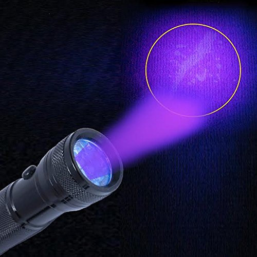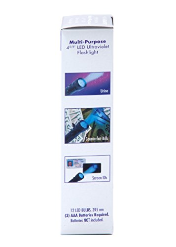 -. Feature : OUR QUALITY & YOUR SATISFACTION GUARANTEED! Absolutely NO risk to you. Lifetime guarantee. / SIMPLE & EASY TO USE UV URINE DETECTOR. Locate troublesome stains or evidence of pests safely and effectively. This UV flashlight features a wavelength of 395nm. / 12 LED BULBS BOASTS NUMEROUS ADVANTAGES: Excellent durability, environmentally friendly and low voltage. / A VARIETY OF ADDITIONAL APPLICATIONS: Verifying IDs, fake currency, scorpion hunting & more! / LIGHTWEIGHT YET STRONG DESIGN. Requires only 3 AAA batteries (NOT INCLUDED).