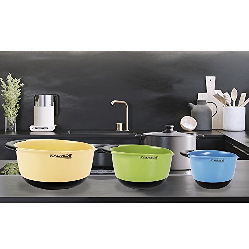 KALREDE Mixing Bowls Set of 3 Piece,Plastic Mixing Bowls,BPA free, Multi-Colour, Dishwasher safe,Baking Tool Accessories