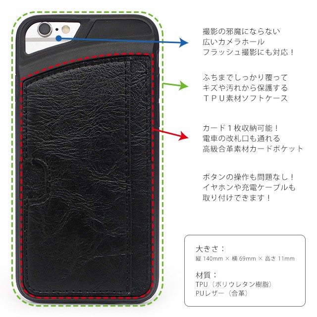 ■対応機種iPhone8/7/6■ケース本体サイズH140mm × W69mm × D11mm ■素材素材 : TPU(ポリウレタン樹脂)PUレザー■ iPhone アイフォン あいふぉん アイホン あいほんiPhone8 アイフォン8 8 アイフォン8ケース 8ケース アイホン8ケース iPhone8ケースiPhone7 アイフォン7 7 アイフォン7ケース アイフォンケース7 iphone7ケース アイホン7ケース 7ケース iphone7オシャレケース アイフォーン7ケース セブン iphone7ケースICOCAiPhone6s アイフォン6s 6s iPhone6sケースカバー 6s iphone6sケース アイフォン6siPhone6 アイフォン6 iphone6ケース アイホン6ケース 6ケース 6 アイフォン6 アイフォン6ケース アイフォーン6ケース アイフォーン6■ ソフトケースTPU携帯ソフトケースiPhone8■コラボーン オリジナルレザー icカード カード カード収納 カードホルダー■その他iphone7 iPhone8 ケース iPhone6s ケース iPhone6 ケース ソフトケース PUレザー 合革 黒 ブラック TPUケース パスケース ICOCA SUICA PASUMO PITAPA スマホケース 携帯ケース