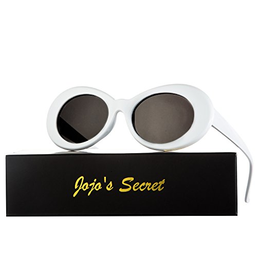 Oval Mod Thick Frame Sunglasses, JOJO'S SECRET Bold Retro Clout Goggles with Round Lens JS004