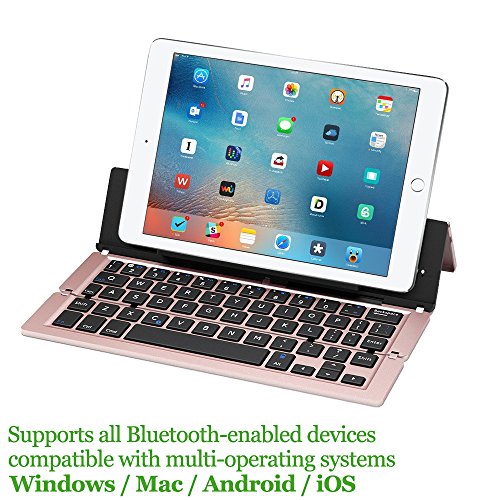 ULTRA-SLIM & FOLDABLE & PORTABLE: The foldable design makes the keyboard take up very little space and portable.The ultra-slim keyboard provides you with very natural and pleasing typing experence. Perfect partner for your business, trip, and entertainment!