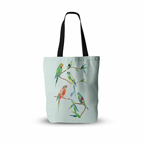 KESS InHouse Sonal Nathwani "Parrot Party" Multicolor Blue Watercolor Everything Tote Bag, 13" x 13", Multicolor