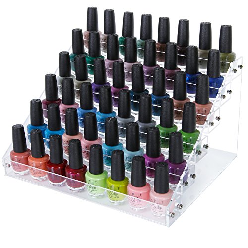 LARGE CAPACITY: The nail polish organizer features 6 tiers to keep all your nail polish bottles in one location, and it is capable of holding up to 40 standard size bottles. Multiple bottle styles and brands such as Essie, Sally Hansen and Revlon fit comfortably within each tier.
