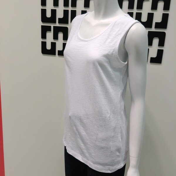 슬럽사 원단을 사용하여 터치감이 부드럽고 이너로 받쳐입기 편안한 민소매 티셔츠 입니다 베이직한 디자인에 신축성 좋은 스타일 입니다★27 인치 기장 입니다★