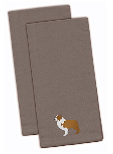 Caroline's Treasures BB3422GYTWE Red Border Collie Gray Embroidered Kitchen Towel (Set of 2), 28" x 19", Multicolor