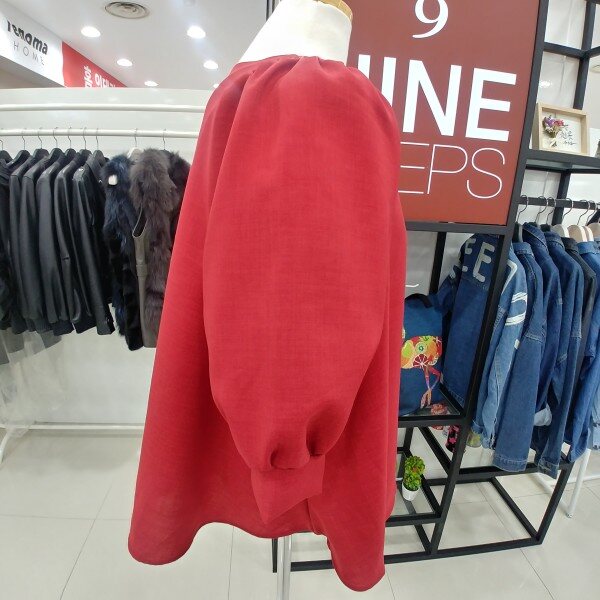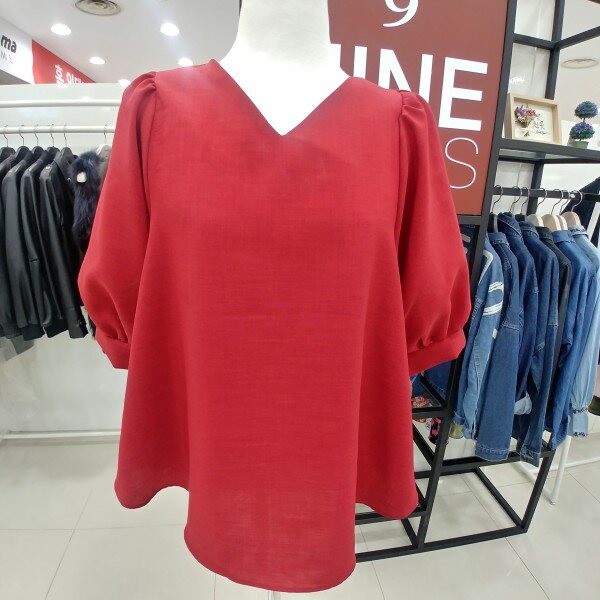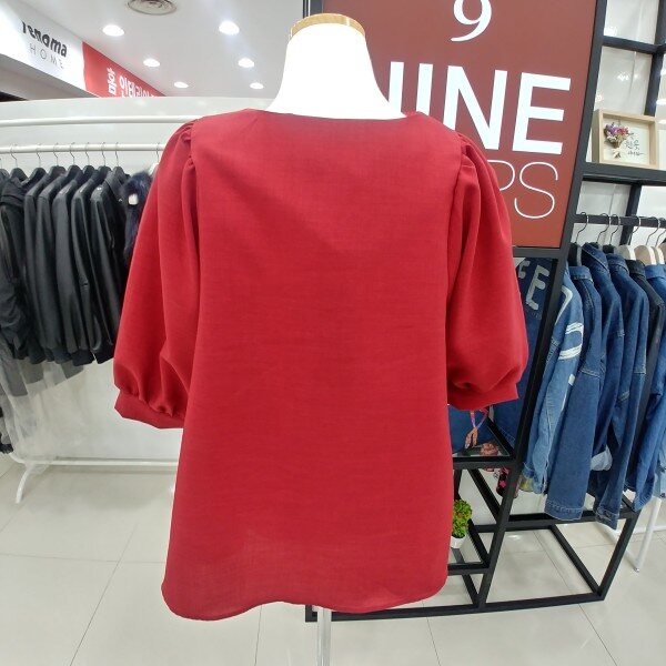 여리여리해보이는 브이넥과 과하지 않은 어깨퍼프가 여성스러움을 더해주는 간절기블라우스입니다 약간의 A라인으로 발랄한 느낌입니다