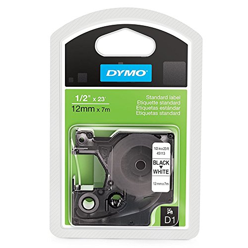 -. Feature : Label Size - text: 1/2" x 23 ft / Label Color(s): Black on White / High quality label maker tape that adheres to plastic, paper, metal, wood, and glass and is ideal for labeling office supplies, electronic accessories, tools, kitchen items, garage equipment, and more. / Easy-to-peel split-back design makes applying labels quick and easy. / Compatible with: DYMO LabelManager,DYMO LabelPoint,DYMO LabelWriter Duo,DYMO Rhino