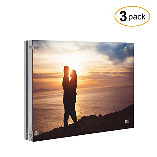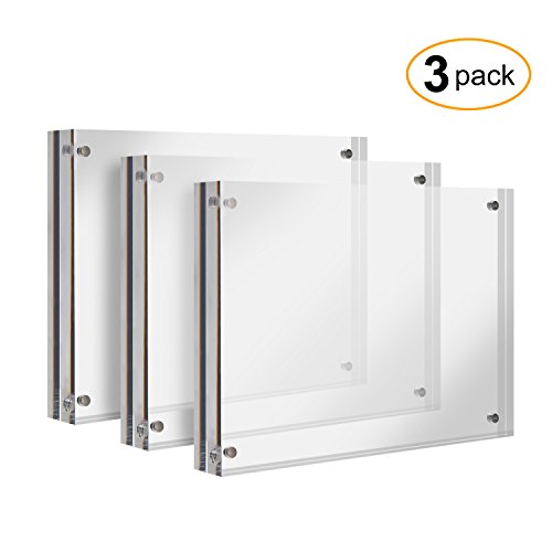 CRUODA Acrylic photo frame 4x6", Magnetic Picture Frames, Double Sided Thick Frames, Family picture frames (4"x6" 3pc)
