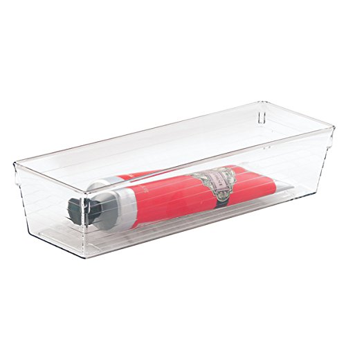 mDesign Drawer Organizer for Eyeshadow, Makeup Brushes, Cosmetics - Pack of 6, 3" x 9" x 2", Clear
