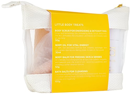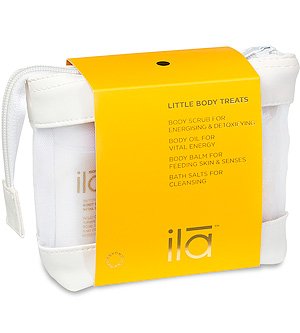 -. Binding : Health and Beauty -. Brand : ila -. EAN : 5060151930361 -. Feature : Includes: Body Scrub for Energizing & Detoxifying - 50 g Body Oil for Vital Energy - 30 ml Body Balm for Feeding Skin & Senses - 50 g Bath Salts for Cleansing - 100 g / Warnings: Store away from light and heat. Keep out of reach of children. Avoid direct contact with eyes. Once opened best used within 6 months. Due to essential oils, this product is not recommended during pregnancy or while breastfeeding. -. IsAdultProduct : 0 -. Label : ila-Spa -. Manufacturer : ila-Spa -. Model : SP0008 -. MPN : SP0008 -. PackageQuantity : 1 -. PartNumber : SP0008 -. ProductGroup : Prestige Beauty -. ProductTypeName : LUXURY_BEAUTY -. Publisher : ila-Spa -. ReleaseDate : 2015-01-29 -. Studio : ila-Spa -. Title : ila-Spa Little Body Treats, 6.76 oz.