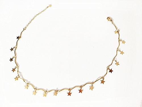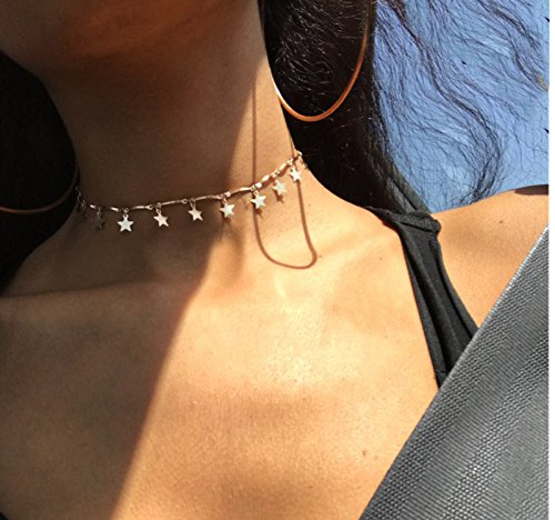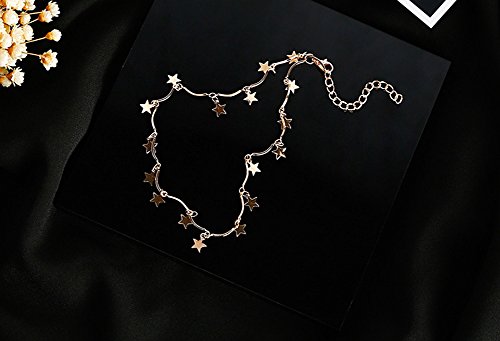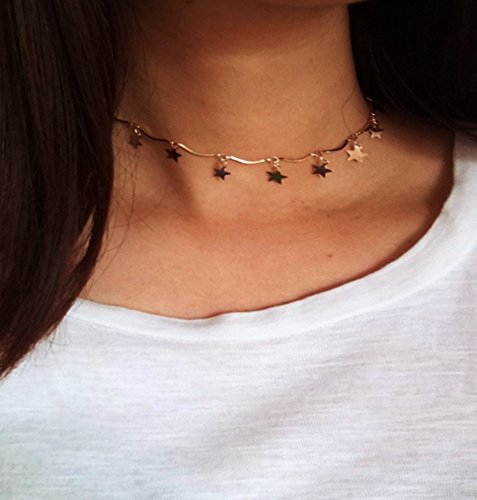 Women Sexy Sequins Choker Necklace Short Star Pendant Jewelry Chains (Gold color)
