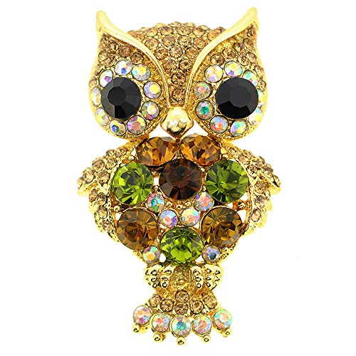 -. Title : Golden Multicolor Owl Swarovski Crystal Pin Brooch