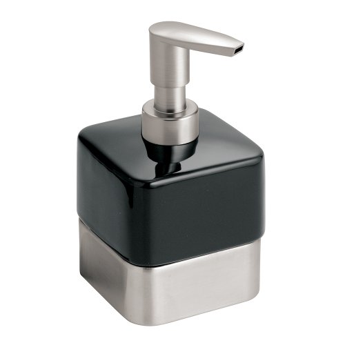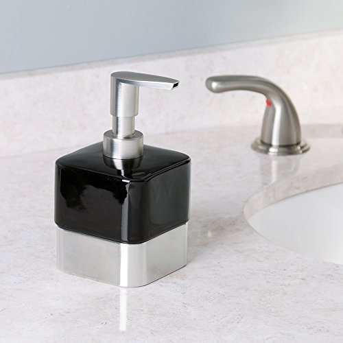 InterDesign Gia Ceramic Soap & Lotion Dispenser, for Kitchen or Bathroom Countertops - Short, Black/Brushed
