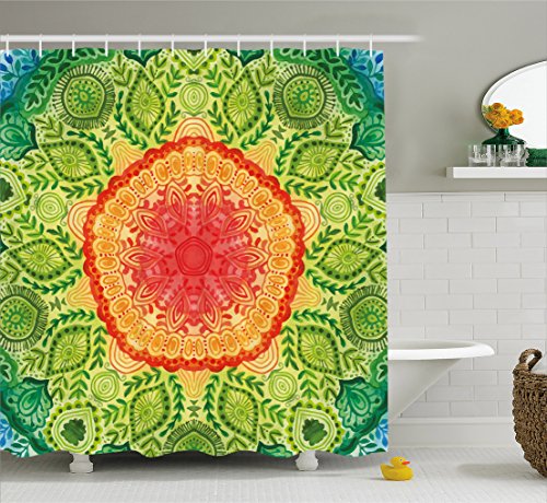 Ethnic Shower Curtain by Ambesonne, Mandala Tie Dye Design Flower Children Kids Children Inspired Image, Fabric Bathroom Decor Set with Hooks, 70 Inches, Blue Red Yellow and Green