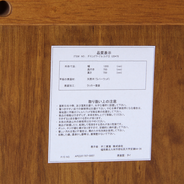 ●塗装:ラッカー塗装、天然木(ラバーウッド)