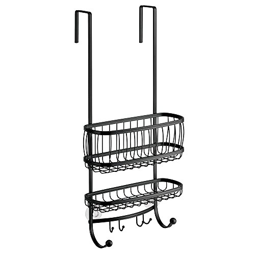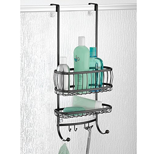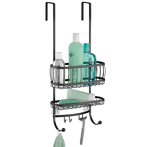 MDESIGN OVER-THE-DOOR BATHROOM SHOWER CADDY FOR SHAMPOO, CONDITIONER, SOAP - BLACK