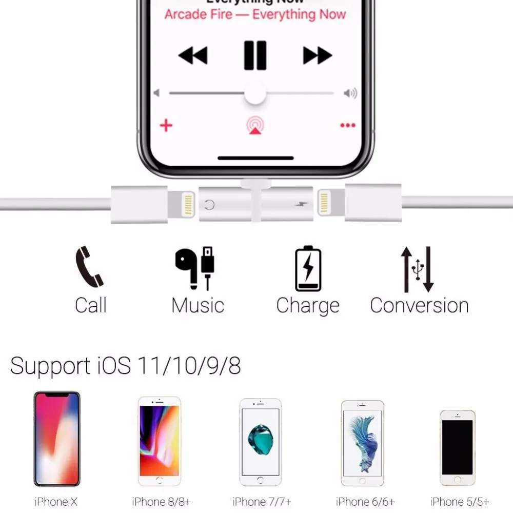 Muti-function:2 IN1 Audio Cable Adapter For lighting headphone