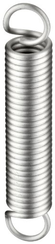 Extension Spring, 302 Stainless Steel, Inch, 0.36" OD, 0.049" Wire Size, 2.25" Free Length, 3.7" Extended Length, 11 lbs Load Capacity, 6.91 lbs/in Spring Rate (Pack of 10)
