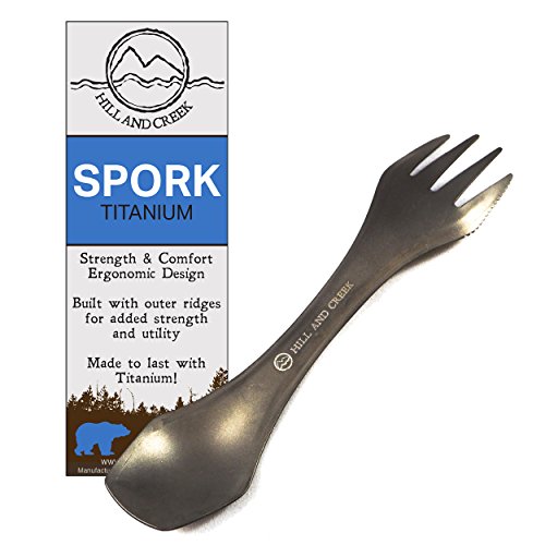 Studio : Hill and Creek Publisher : Hill and Creek Product Description The Hill and Creek all TITANIUM SPORK is made for the outdoors lover from people who actively live for the great outdoors. Whether for the ultralight backbacker looking for a pro-grade product or the weekend hiker this product is designed for light weight strength and ergonomic ease with added power-rail ridges to minimize flex and bending. These sporks are well-suited for family picnics, car cutlery, office lunches and of course, our favorite, car camping! 0