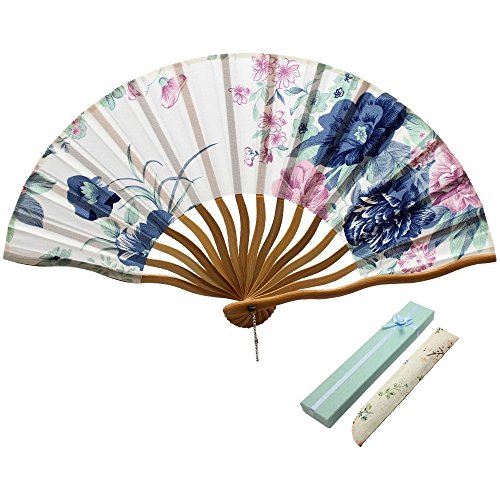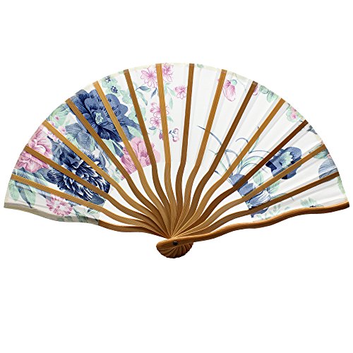 Jsswb Mini Handmade White Silk Folding Fan with Colored Flowers