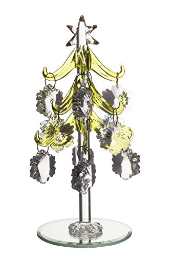 Tabletop Green Christmas Glass Tree with 12 Snowflake Chrystal Clear Removable Ornaments - Christmas Holiday Décor Collection, 6"h