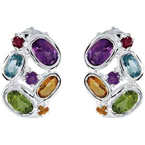 -. Feature : Sterling Silver / Beautiful Design / PAIR GENUINE AMETHYST CITRINE PERIDOT SKY BLUE TOPAZ AND BRAZILIAN GARNET EARRINGS