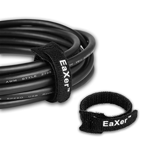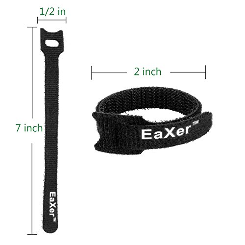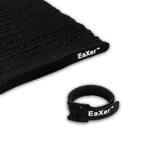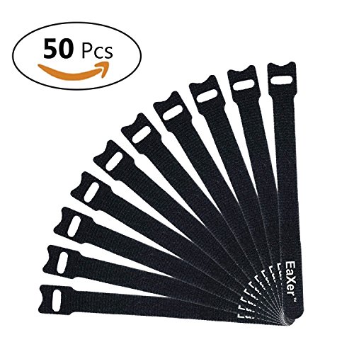 Eaxer Hook and Loop Reusable Fastening Cable Ties,1/2 x 7 Inches Tie Wraps, Black, 50 Pcs