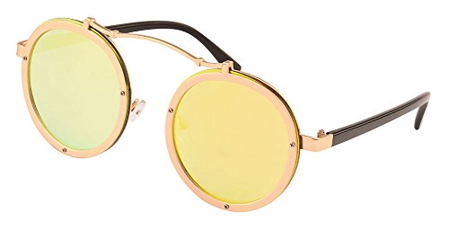 Round Retro Men Metal Driving Circle Sun Glasses Women Steampunk Oversized Vintage Sunglasses (gold gold, 0)